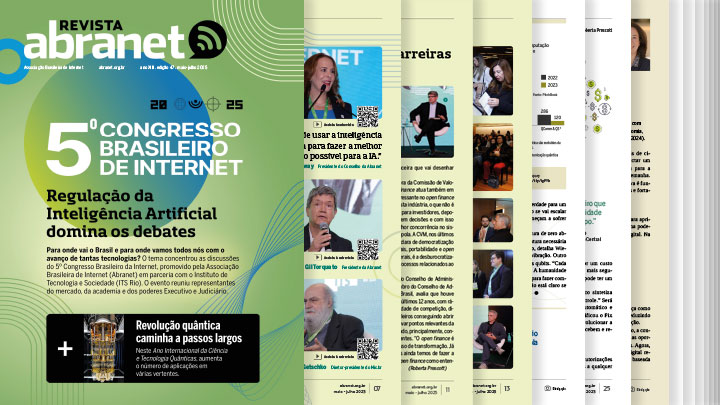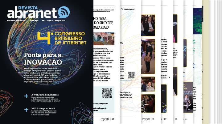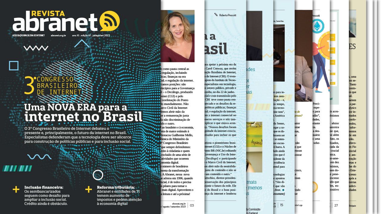 Veja a íntegra da revista digitalJul/Set 2023 - A edição 41, da revista Abranet, já está disponível. A reportagem principal é a cobertura do 3º Congresso Brasileiro de Internet, realizado pela Abranet e pelo ITS, e que discutiu como a tecnologia e a Internet são essenciais para a transformação social, econômica e digital do Brasil.