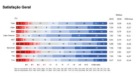 Houve redução também na satisfação com relação a se a operadora cumpre o que promete e divulga em sua publicidade e com relação ao funcionamento do serviço. Aumentou também a insatisfação com relação à disponibilidade da internet e à capacidade de manter a conexão da internet sem quedas.