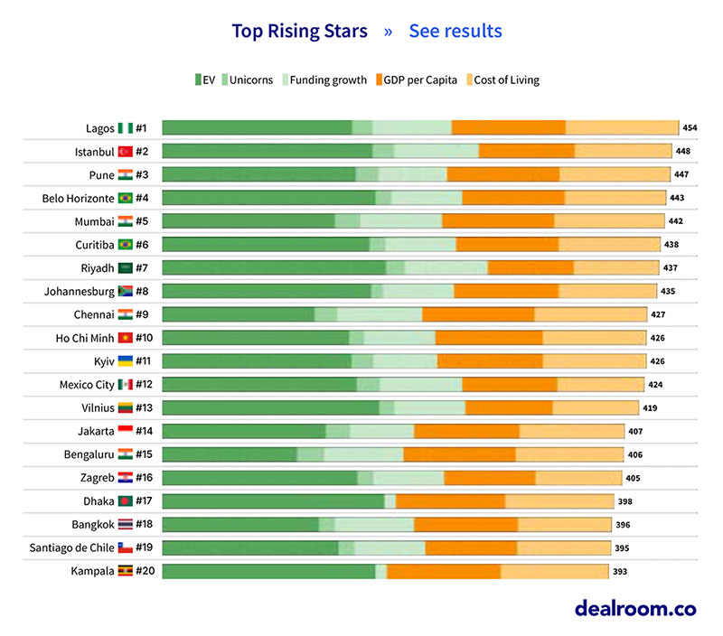 Já Curitiba figura como a 6ª estrela emergente mundial, com um crescimento consistente e foco em áreas como sustentabilidade, logística e mobilidade urbana. O ecossistema curitibano é fortalecido por parcerias entre governo, universidades e setor privado, com destaque para programas como o Vale do Pinhão, que estimula o empreendedorismo local.
