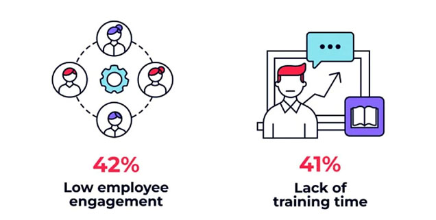 - Os principais obstáculos são a baixa adesão (42%) e a falta de tempo para treinamento (41%).