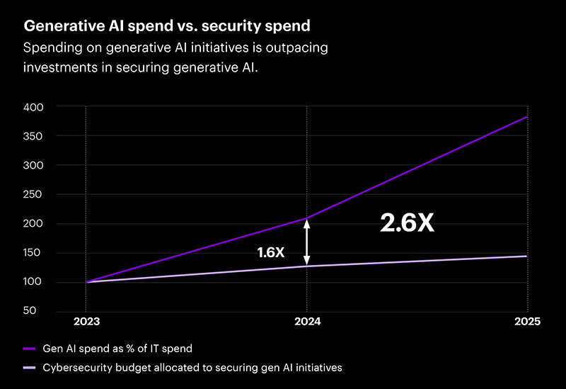 Entre 2023 e 2024, os investimentos em iniciativas de GenAI superaram em 1,6 vez os orçamentos para segurança dessas tecnologias. A Accenture projeta que esse hiato aumentará para 2,6 vezes até 2025, agravando os riscos de ataques por meio de modelos manipulados, dados corrompidos e acessos indevidos.